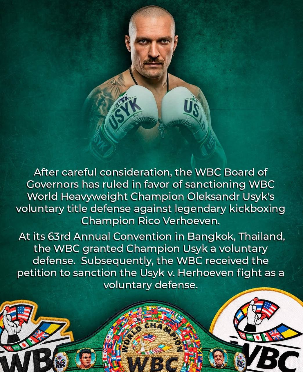 There was a confirmation earlier that no titles would be at stake, but the WBC has now approved Oleksandr Usyk’s bout with Rico Verhoeven as a voluntary WBC heavyweight title defense.