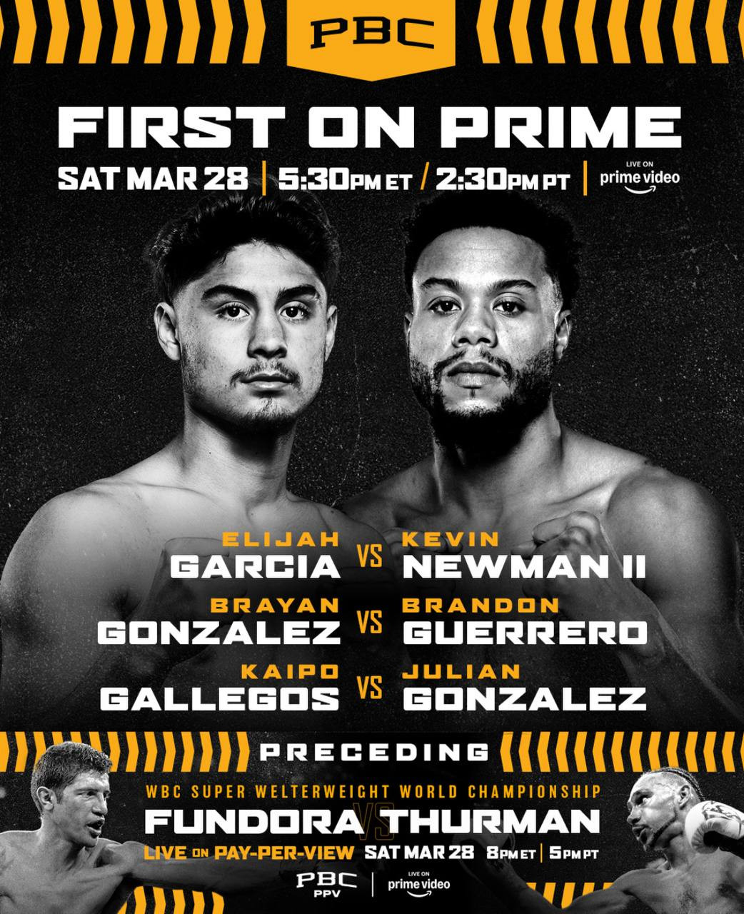 Rising contender Elijah Garcia will face veteran Kevin Newman II in a 10-round super middleweight main event on March 28 at the MGM Grand Garden Arena, streaming free on Prime Video. The card will also feature Kaipo Gallegos vs. Julian Gonzalez and Brayan Gonzalez vs. Brandon Guerrero, serving as th...